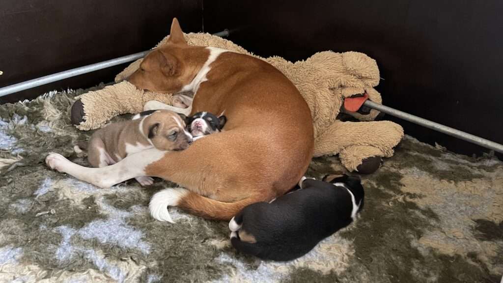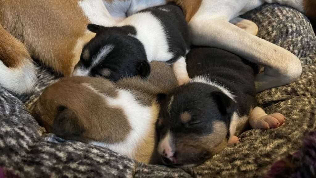 6 januari: Morgen zijn de pups alweer 5 weken oud… waar blijft de tijd. Het zijn alweer hele hondjes, echte mini basenji’s met puntoortjes en krulstaartje. Ze beginnen nu ook echt ontdeugend te worden, rond te rennen en lekker wild met elkaar te spelen. Voor alsnog zijn ze ulta cute en genieten we iedere dag volop van ze!